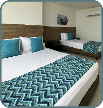 · Ropa de cama completa (sábanas + sobre sábana + almohada por persona). ¿Frío? Pide una cobija extra en la recepción.