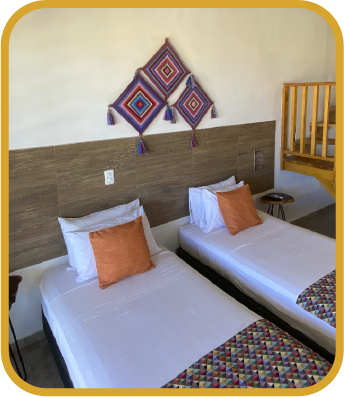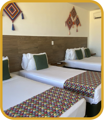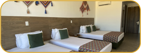 - Camas listas para tu descanso y según el alojamiento contratado (no hay camas sencillas disponibles, las habitaciones de bloque Bungalow cuentan con un sofá cama para acomodación triple).